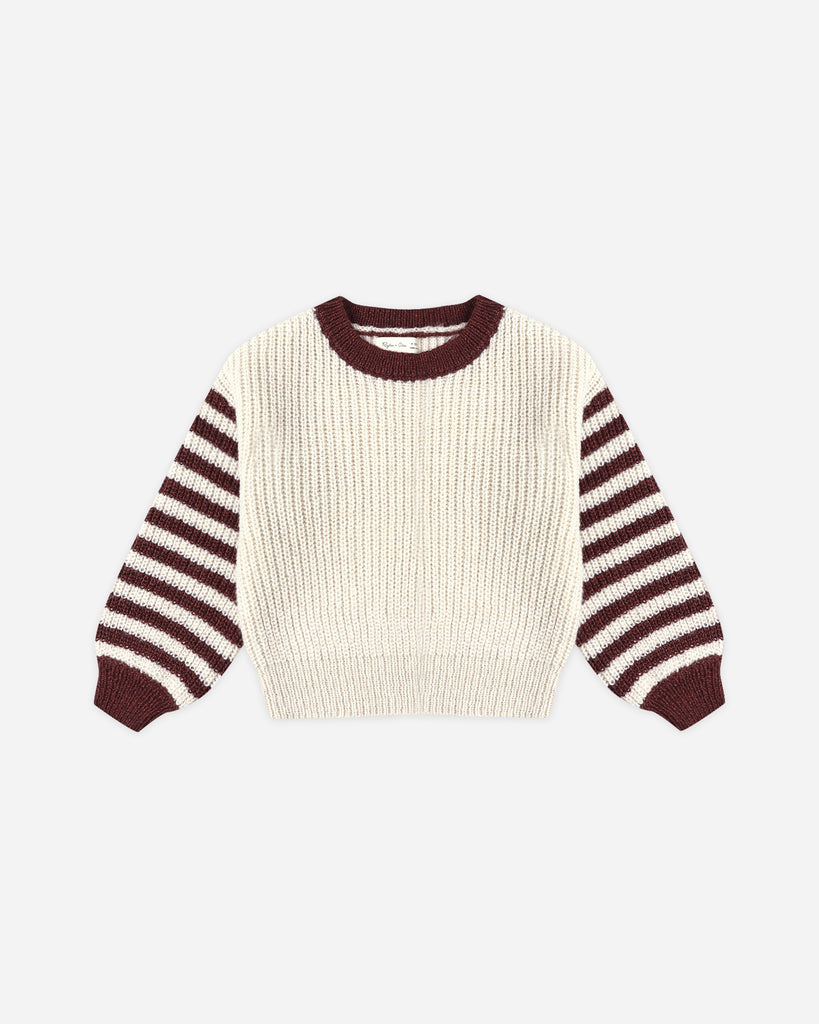 Our Aspen Sweater blends timeless charm with cozy comfort—an essential layer for the season.Featuring our ‘burgundy stripe' pattern on our 'natural' hue.Care: Machine wash cold. Lay flat to dry.Made of 57% acrylic / 43% polyester.