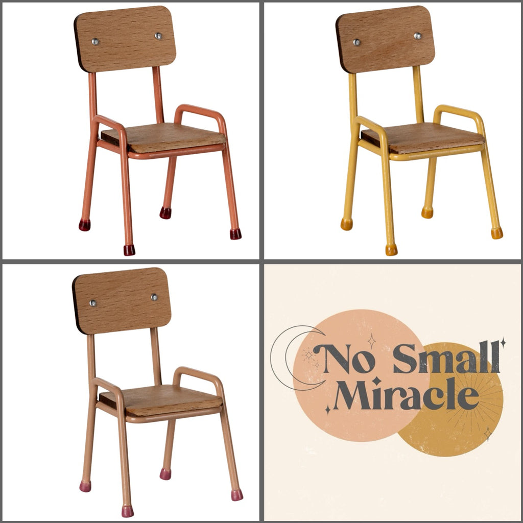 A chair that fits the mouse family and can be used in many situations. The chair is the same model as in the Table and chair set for mice. So if you need more chairs for the table, you need this. Please notice the hand painted details on the metal.