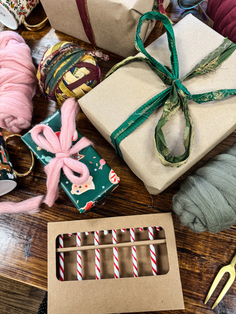Glass Candy Cane Shaped Stir Sticks Boxed Set of 6