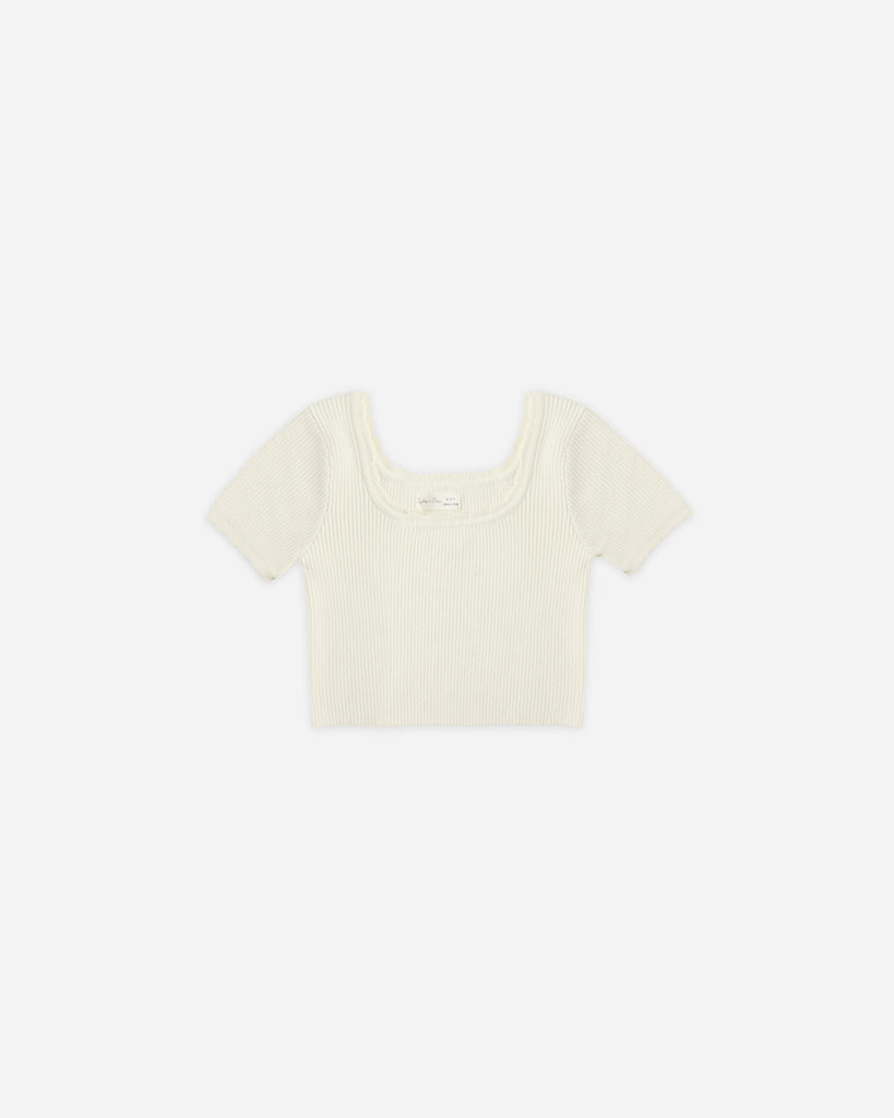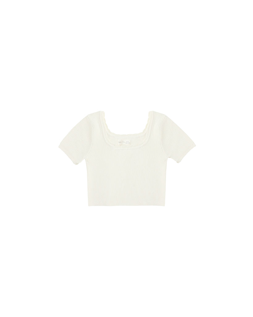 Our cropped-fit Scalloped Tee is a versatile fall staple, crafted from delicate pointelle knit fabric and detailed with scalloped sleeves and neckline.