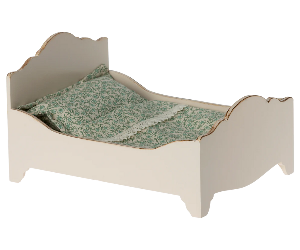 A perfect bed for a good night's sleep. The bed linen is made in our beautiful Maileg printed fabrics - carefully chosen to make the look complete. This beautiful piece looks lovely in our mouse castles.